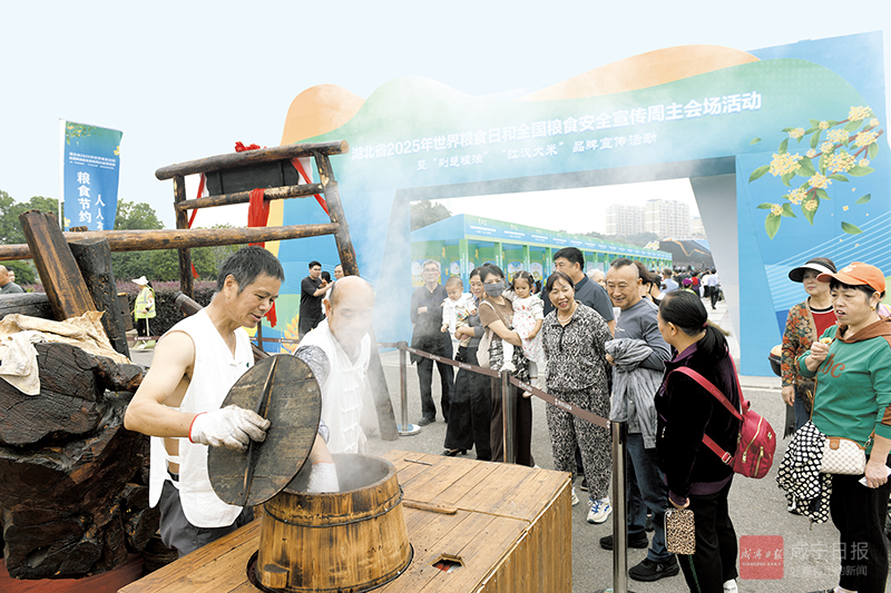 场外,爱粮节粮新风尚。活泼呈现青少年参取粮食平安教育的实践过程;群众粮节粮的践行者、宣传者。用湖北菜籽油现场煎炸的鸡蛋、豆腐、面窝喷鼻气四溢。剧情片《稻穗上的逃梦人》温情放映,糕点也好吃,人人有责”为从题,“榴莲月饼软糯苦涩,线上出色连连。